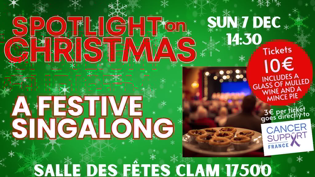 Join us for a joyful afternoon of Christmas songs, readings, mulled wine & mince pies - in aid of Cancer Support France Ouest Aquitaine!