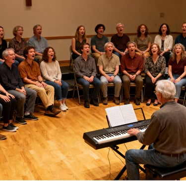 These evenings are not choir rehearsals and not performances. There are no solos and no auditions. You won’t be put on the spot. You simply arrive, take your seat, and sing.